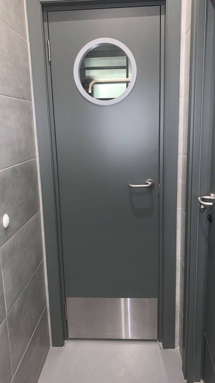 - Двери ZEUS из нержавеющей стали — инертные к химии и влаге, подходят для пищевых производств, лабораторий, бассейнов и других зон с повышенными санитарными требованиями